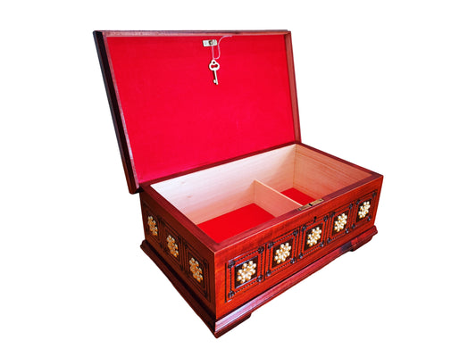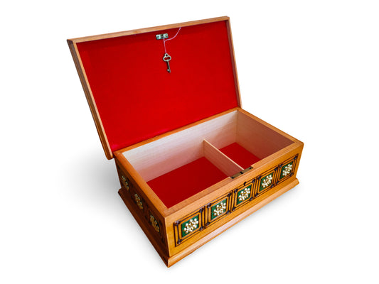 Handmade jewelry box, Wooden jewelry organizer, Decorative keepsake box, Box with lid and key lock