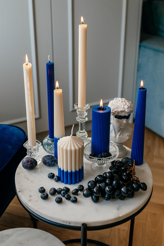 Red Green Brown Candles Tall Pillar Ribbed Soy Decorative Candles