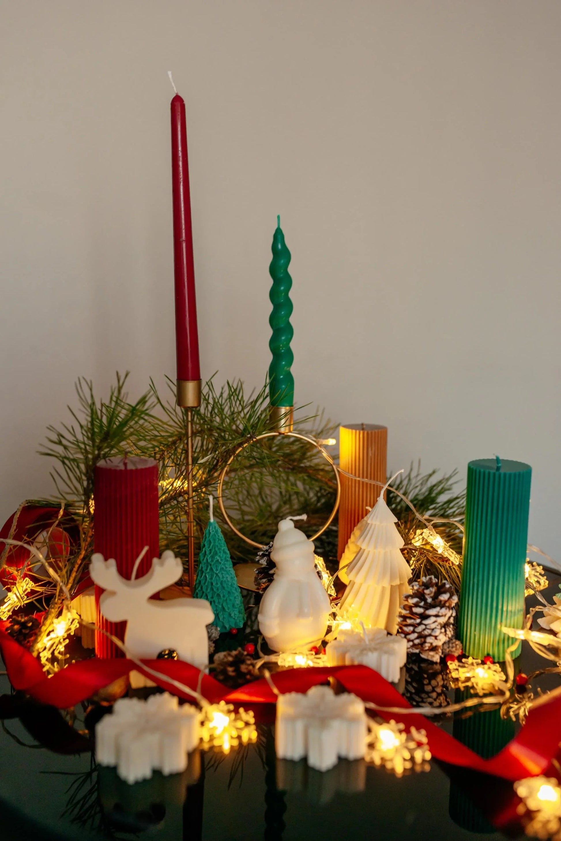 Red Green Brown Candles Tall Pillar Ribbed Soy Decorative Candles