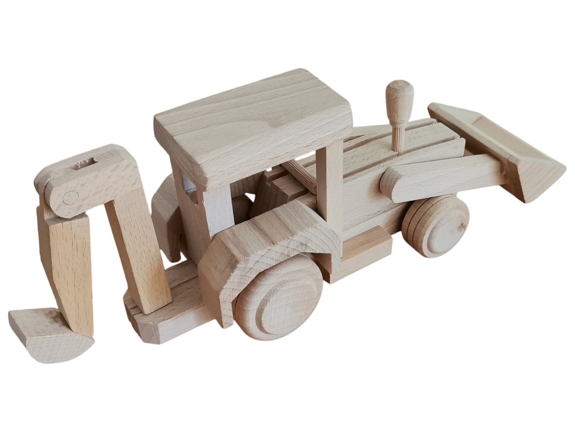 Wooden excavator, unpainted handmade vehicle, natural wood material, toys safe for kids, eco toys for children, Children's Day gift for boy