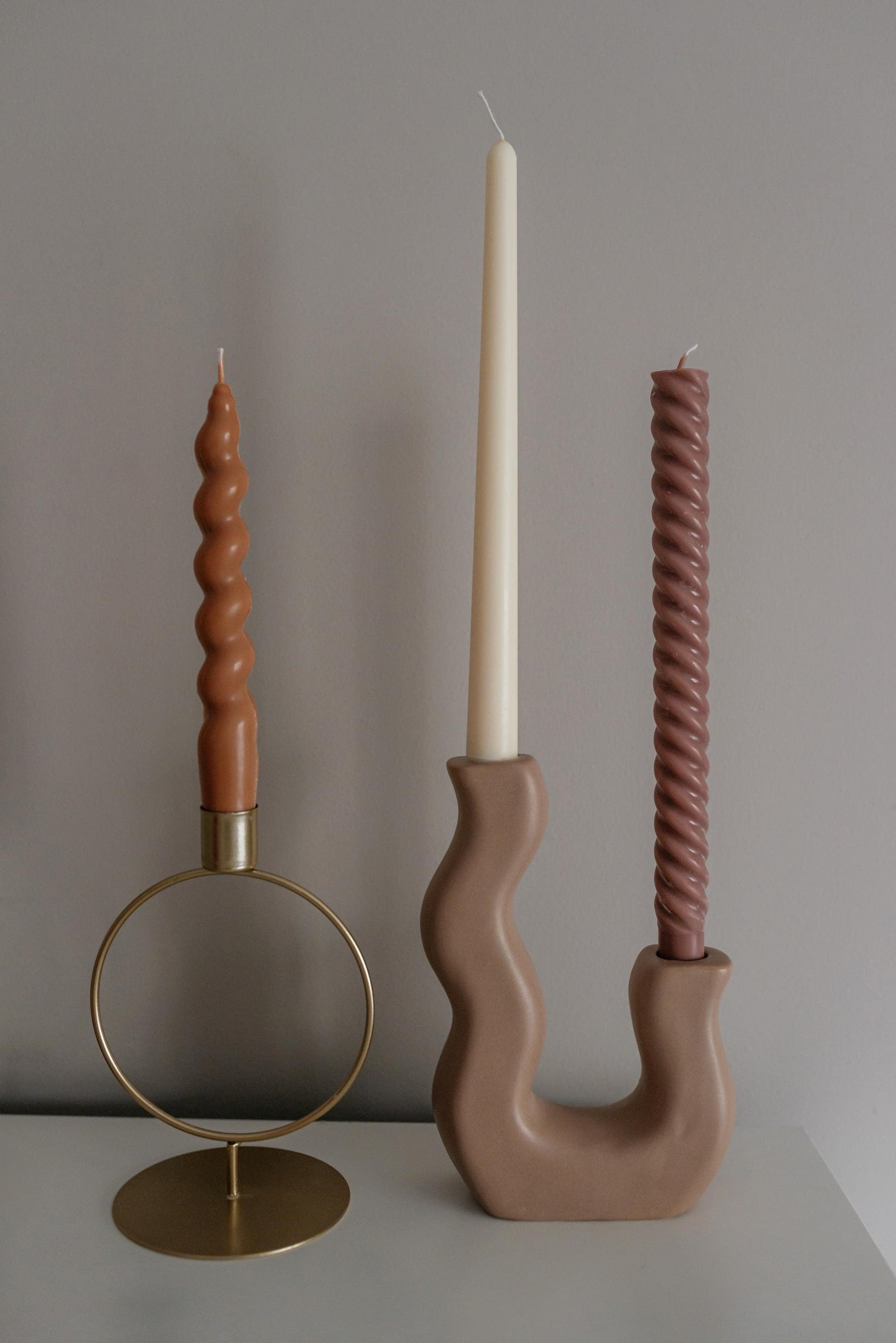 Collection of Twisted Spiral Taper Candles—a perfect blend of artistry and functionality to elevate your ambiance. These homemade decorative candles are crafted with care to add a touch of minimalistic charm to your dining experience.